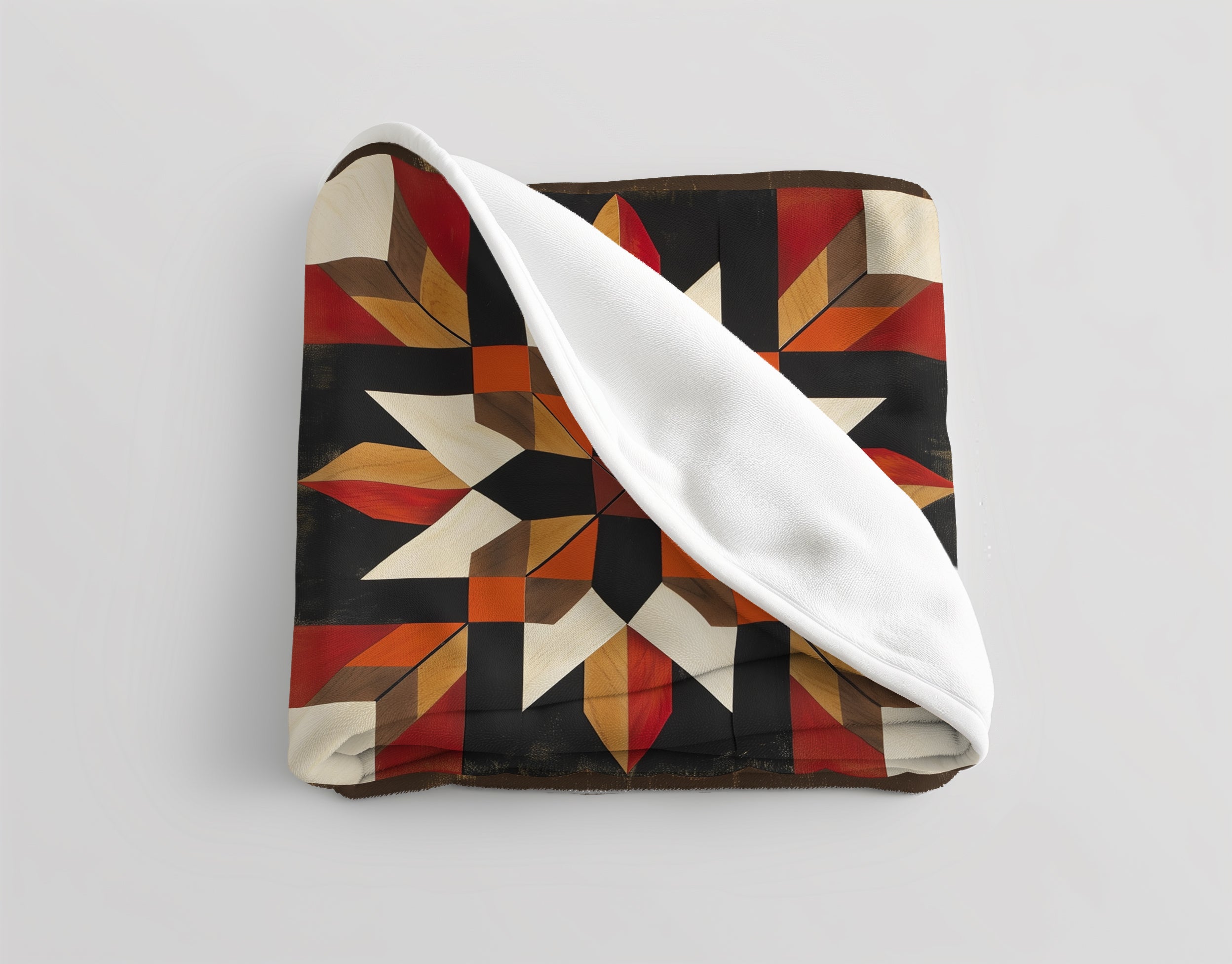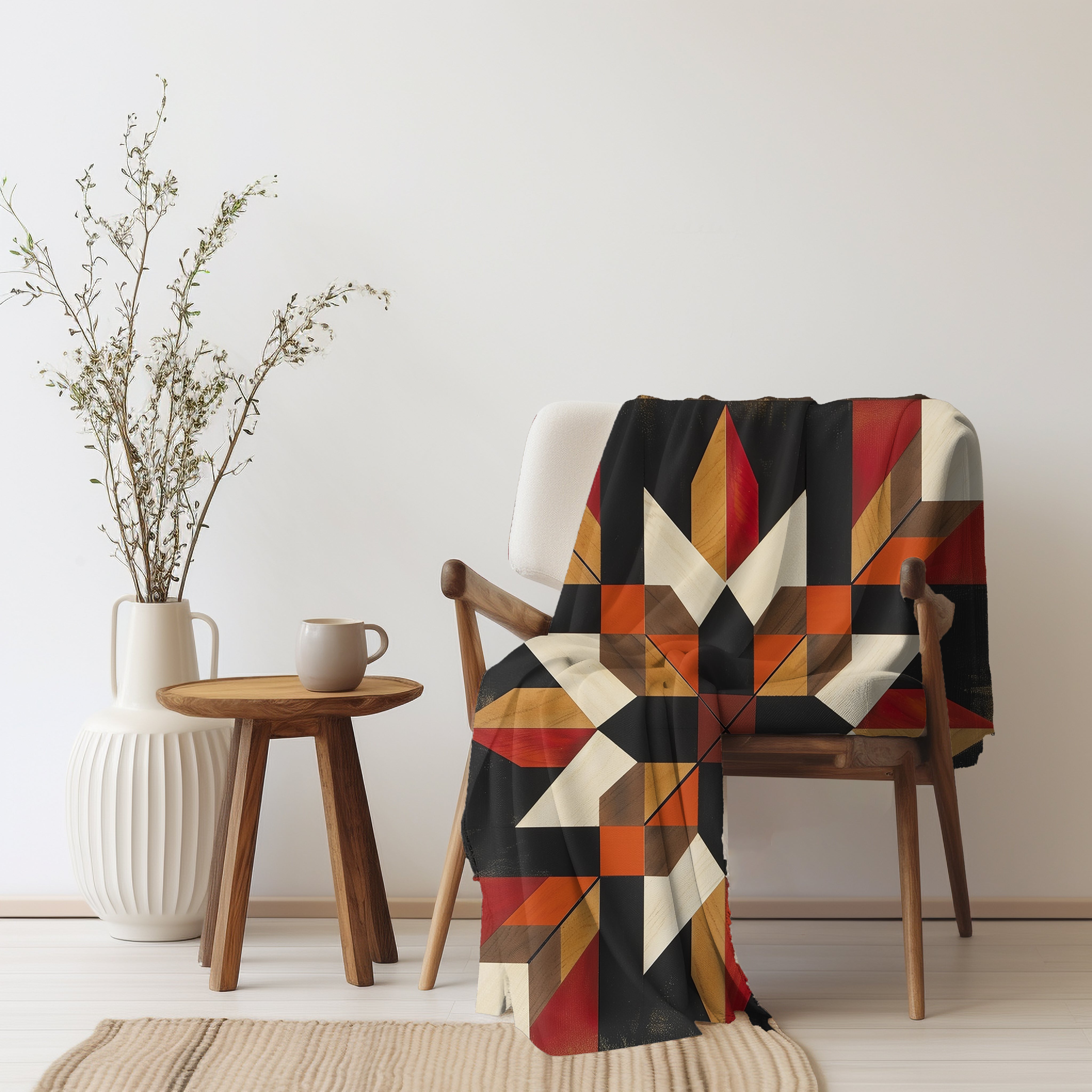Black/Red/Orange Barn Quilt-Inspired Plush Throw Blanket - Cozy Geometric Velveteen Fleece Accent