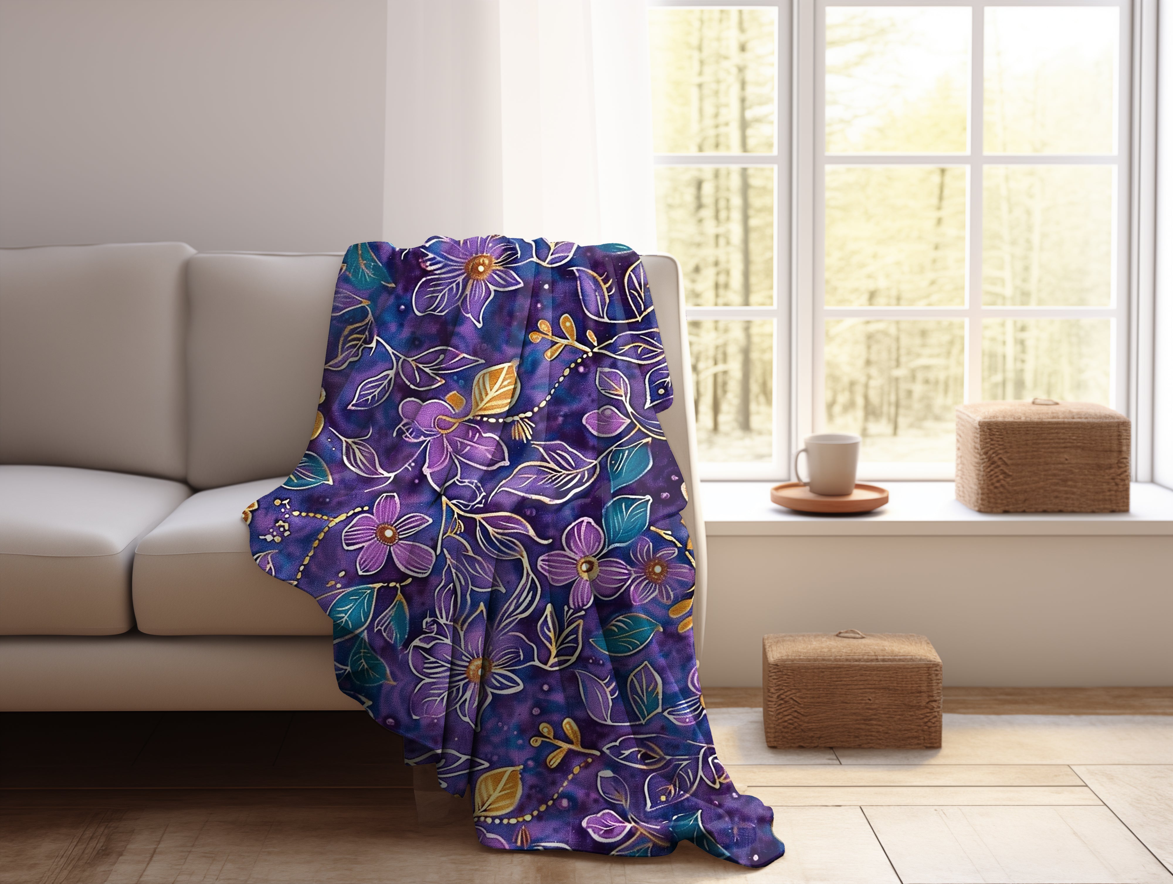 Purple Stellar Garden Velveteen Fleece Throw Blanket