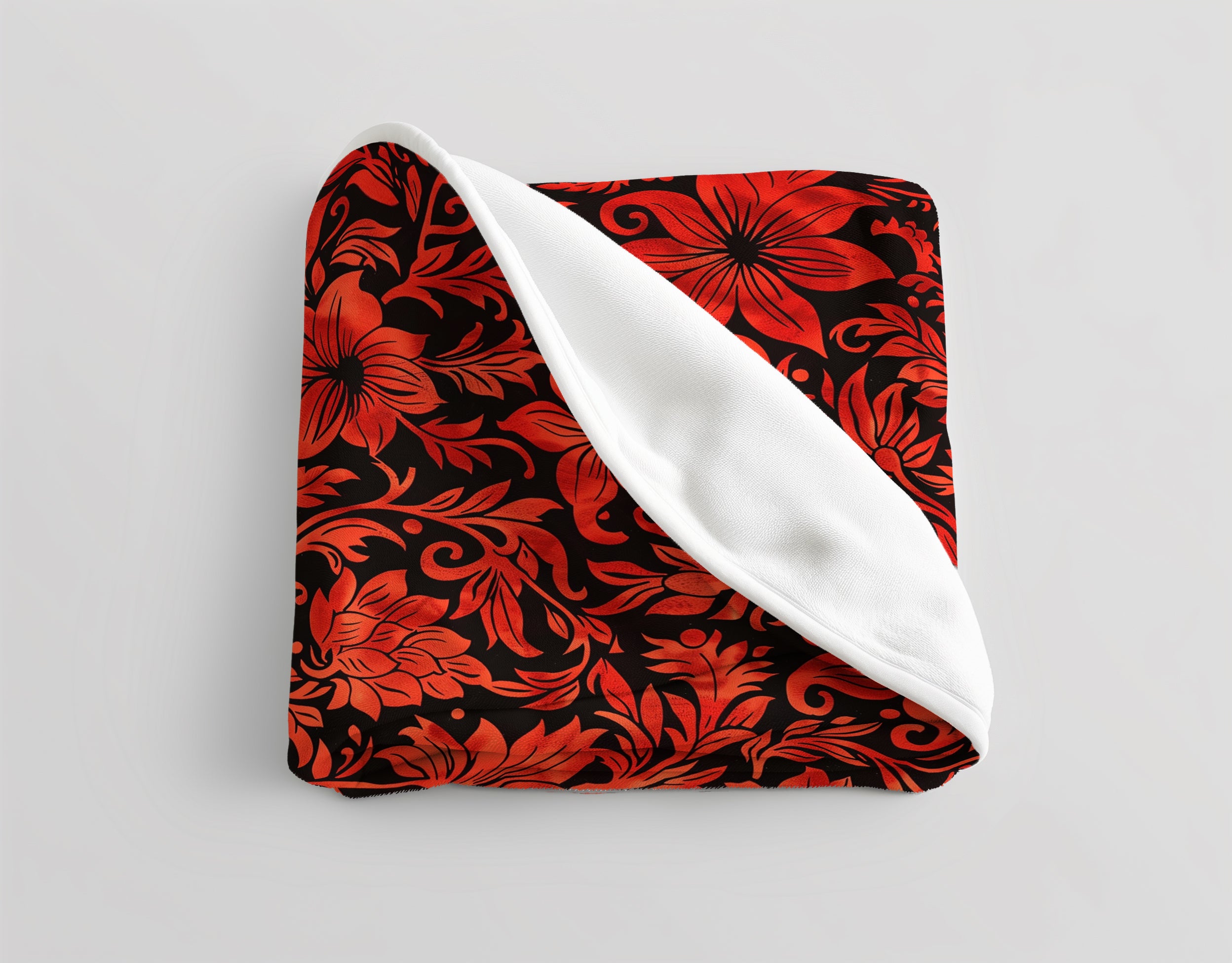 Crimson Contrast Striking Red and Black Floral Elegance Velveteen Fleece Throw Blanket