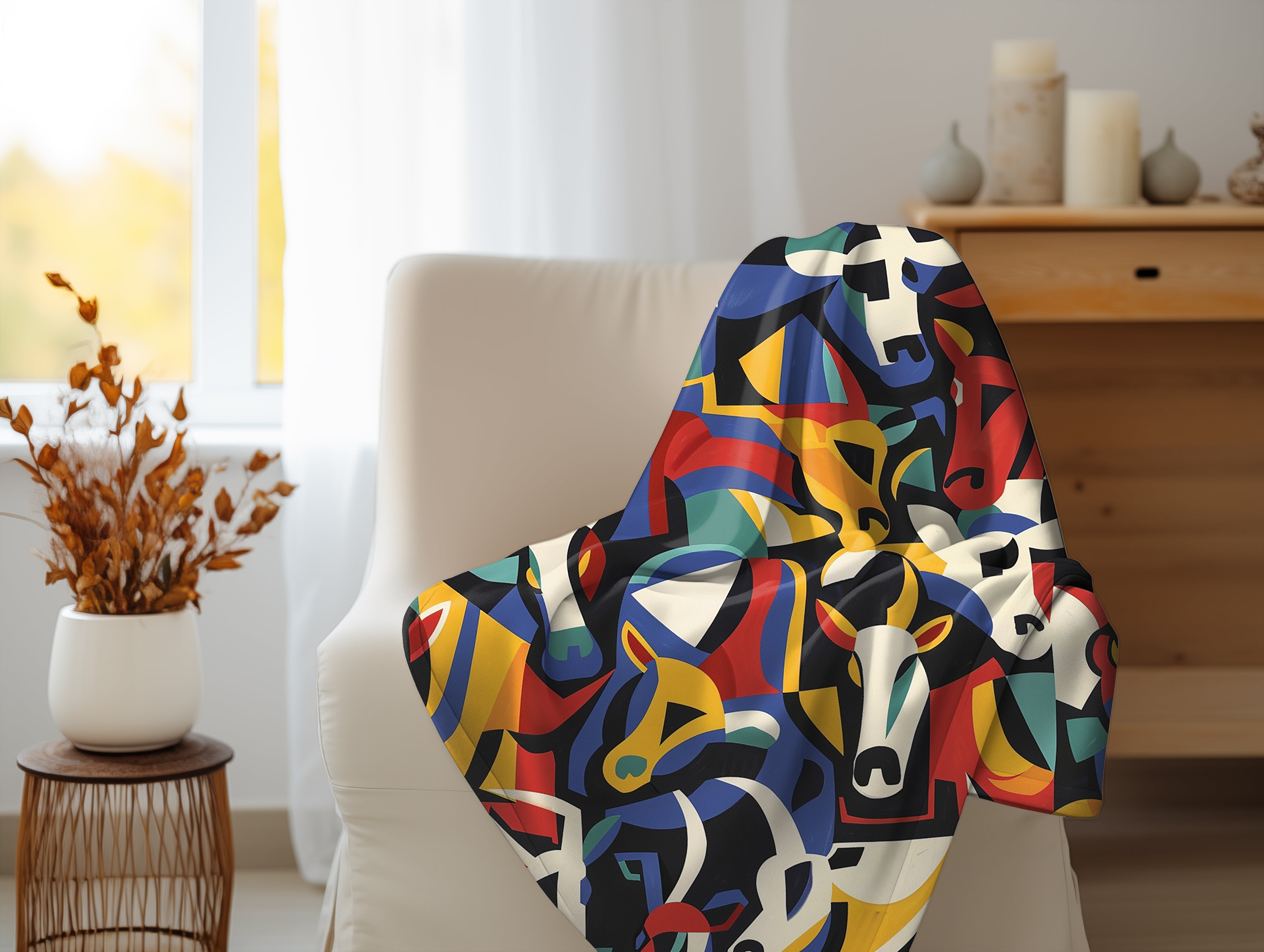 Picasso's Bovine Mosaic Velveteen Fleece Throw Blanket