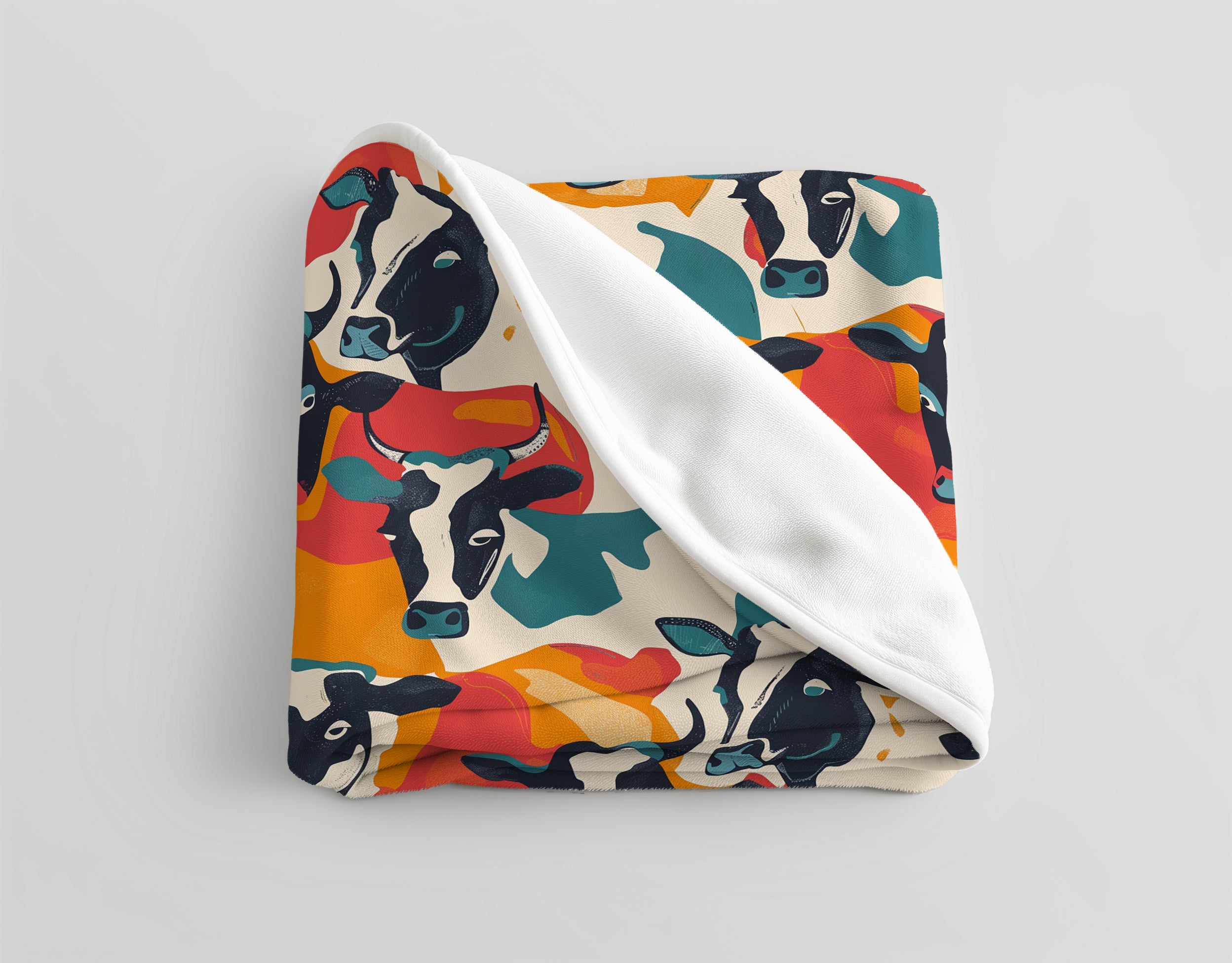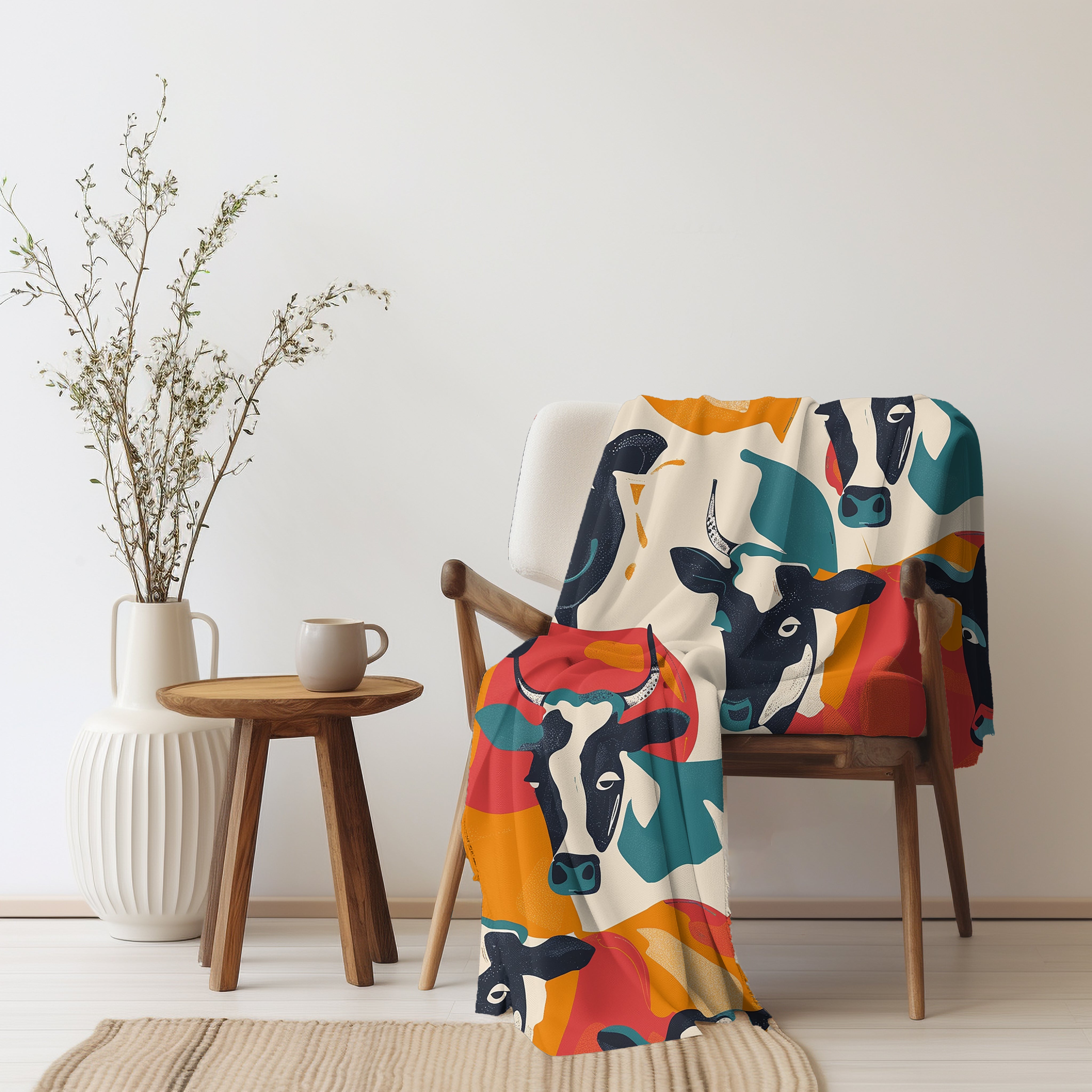 Add a splash of whimsy and color to your living space with the 'Pop Art Pastures Blanket'. This charming blanket features an array of cow faces, each rendered in a...