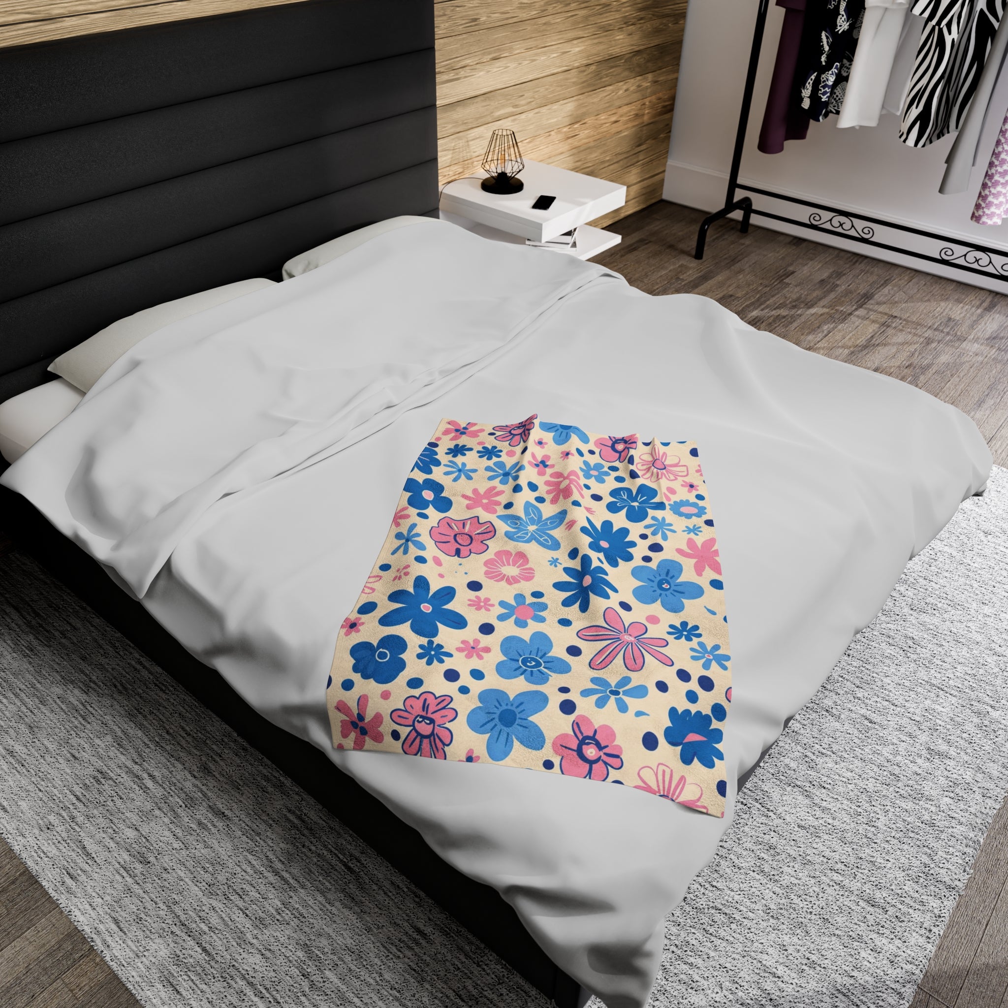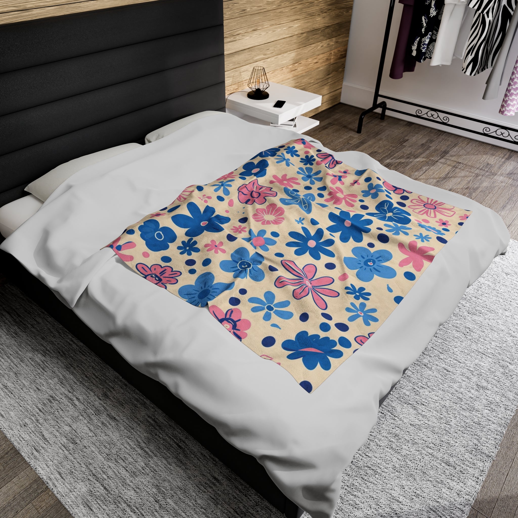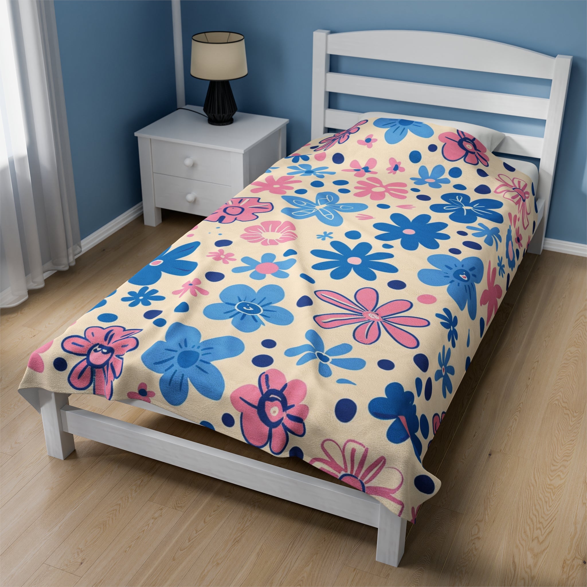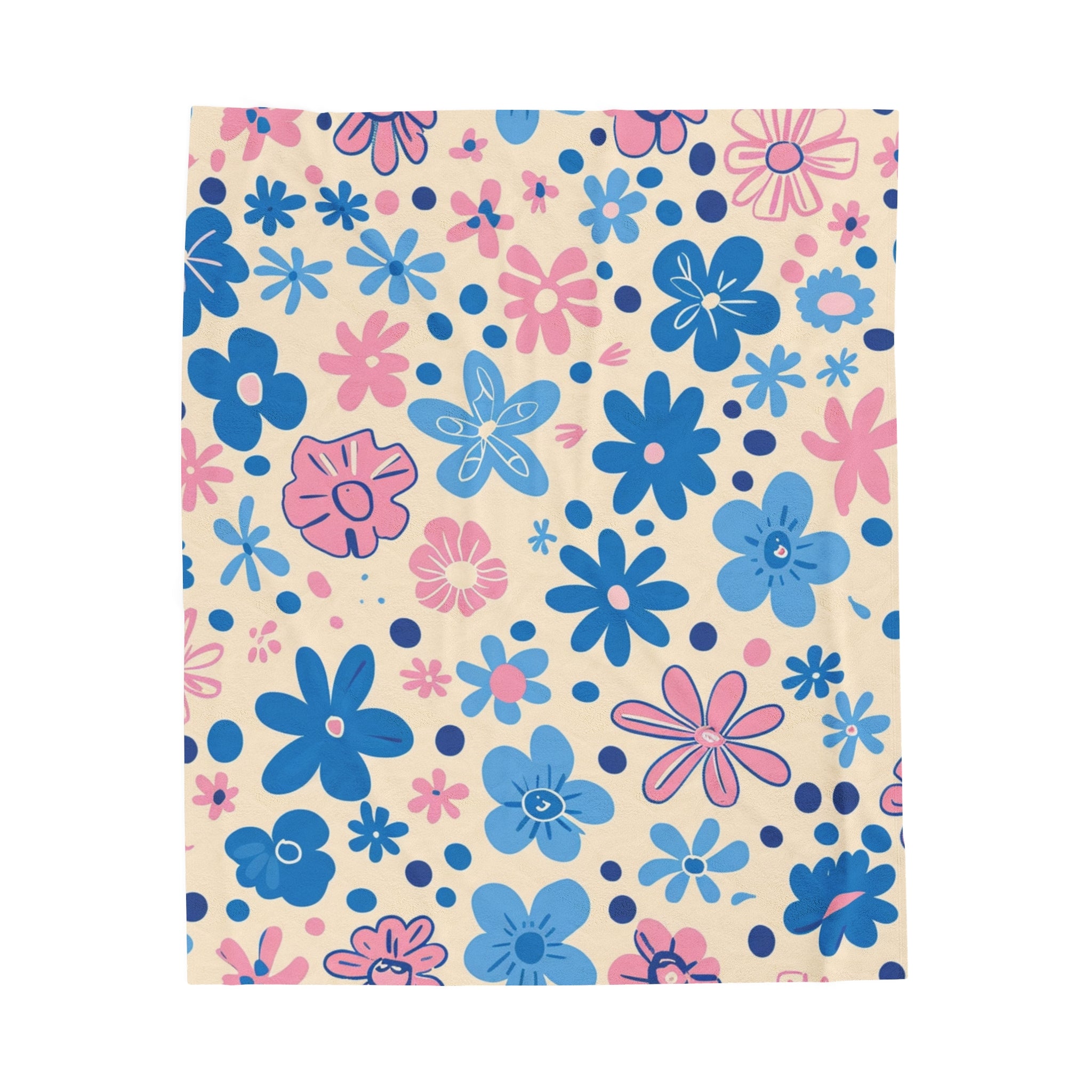 Blue and Pink Floral Harmony Throw Blanket: Luxurious Comfort Plush Throw Blanket - Cozy Floral Velveteen Fleece Accent