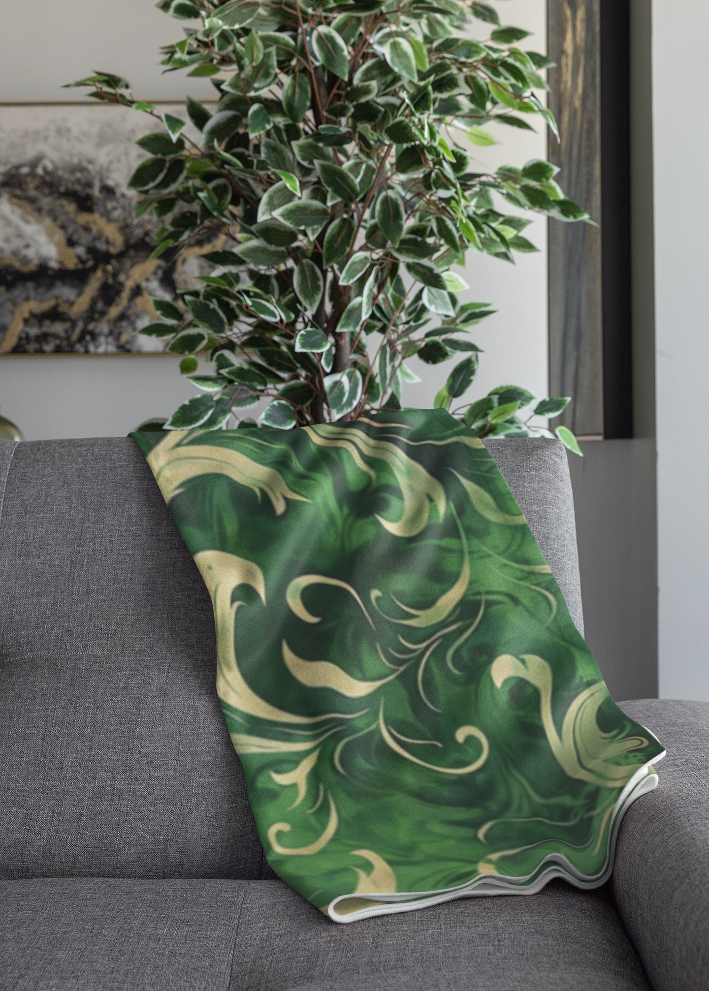 Lush Foliage Flourish A Dynamic Green and Gold Floral Velveteen Fleece Throw Blanket