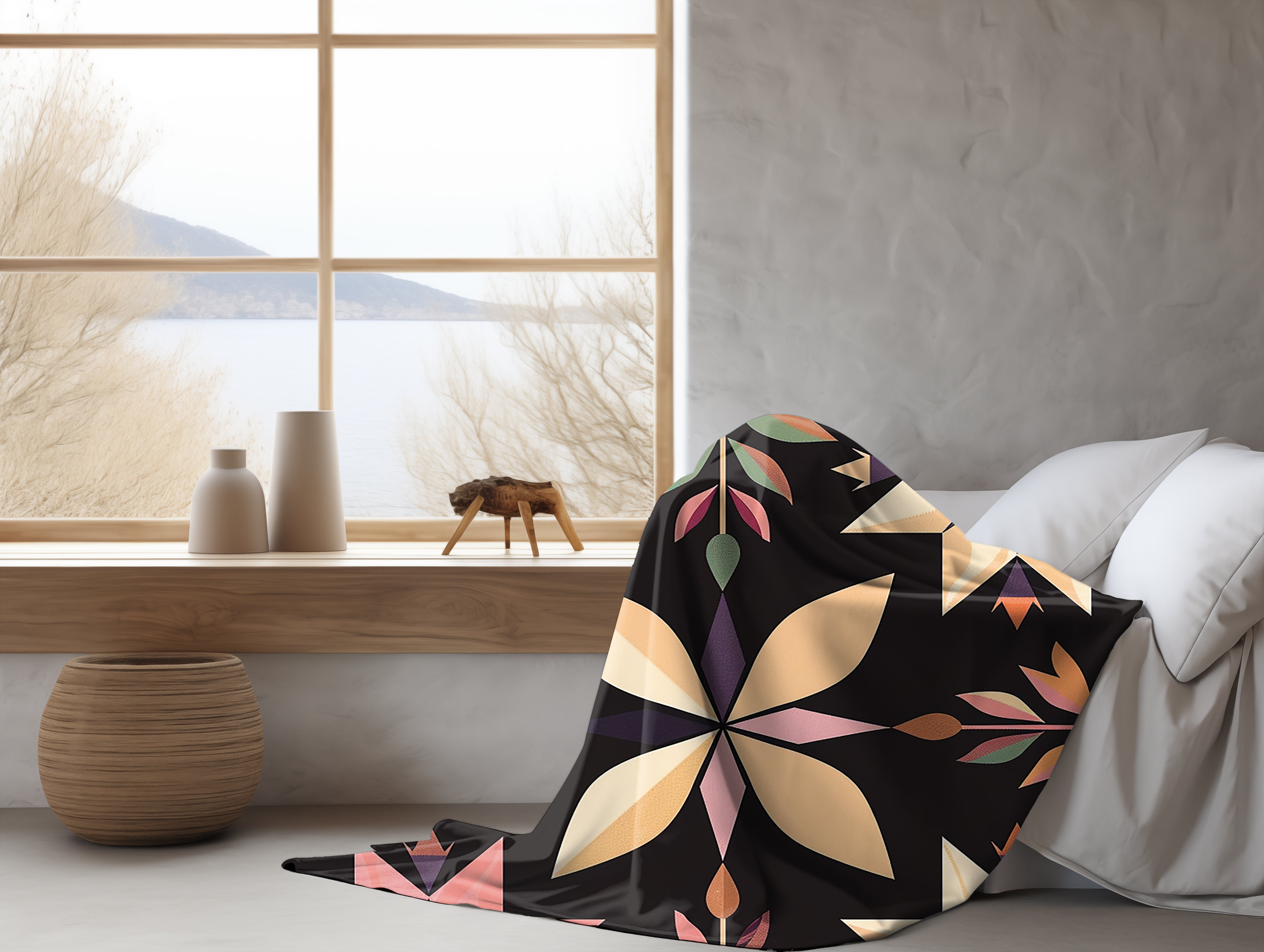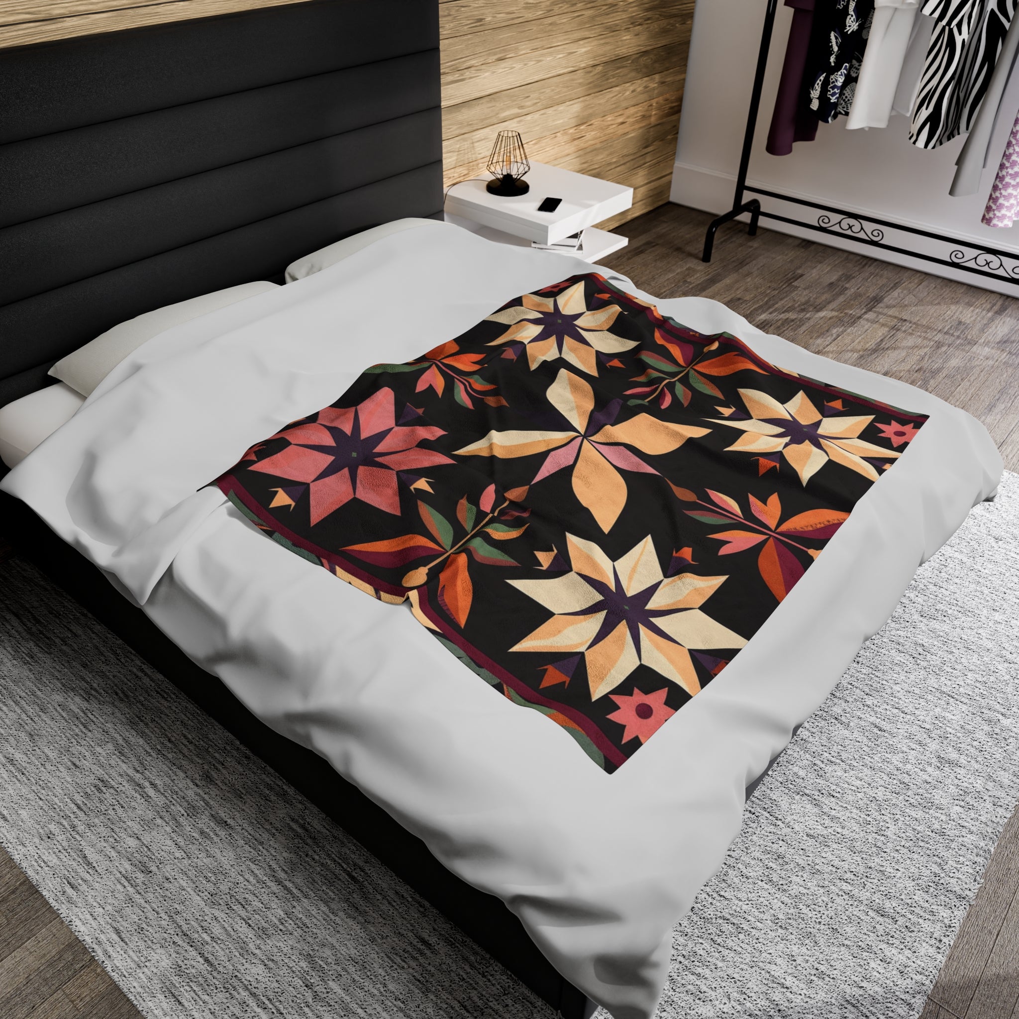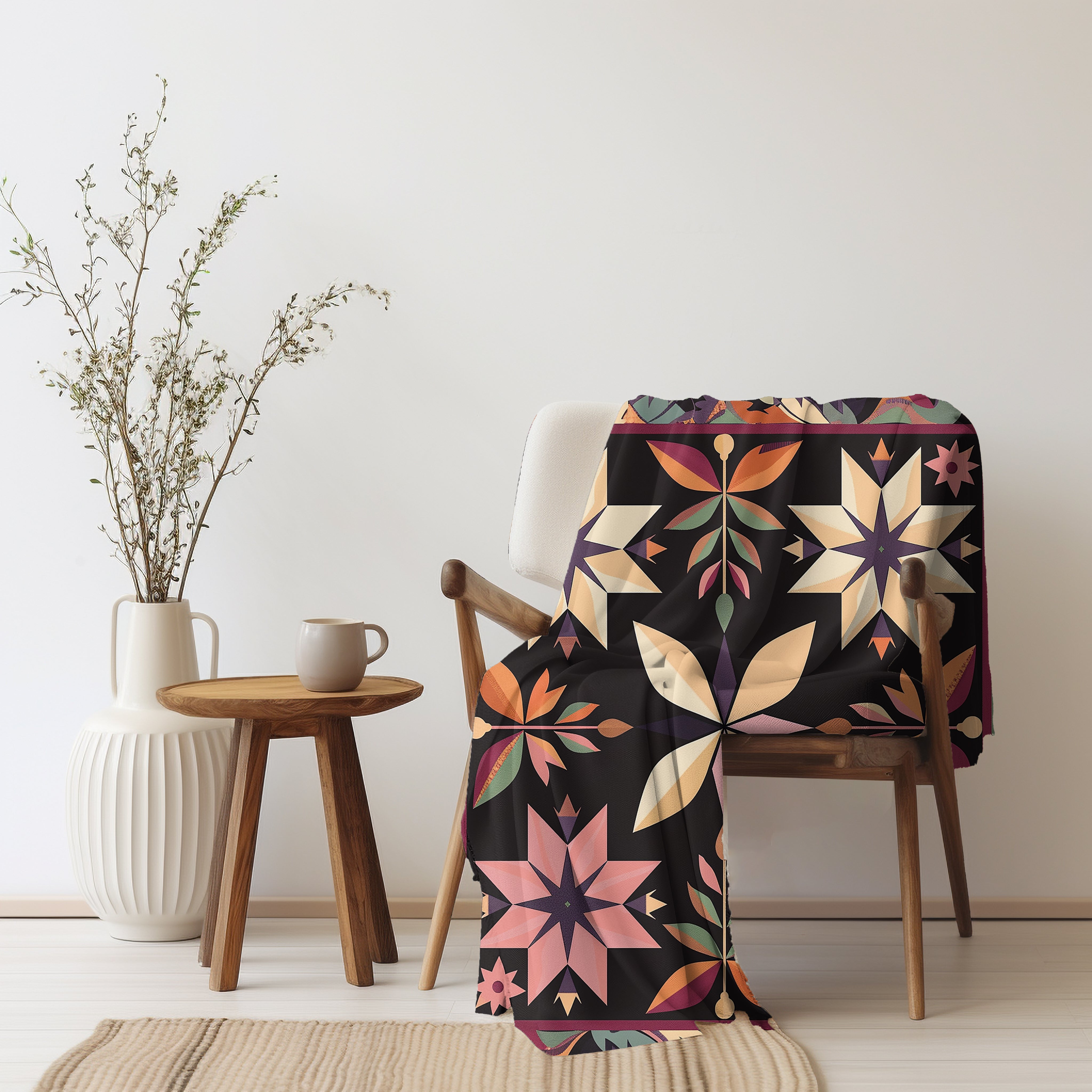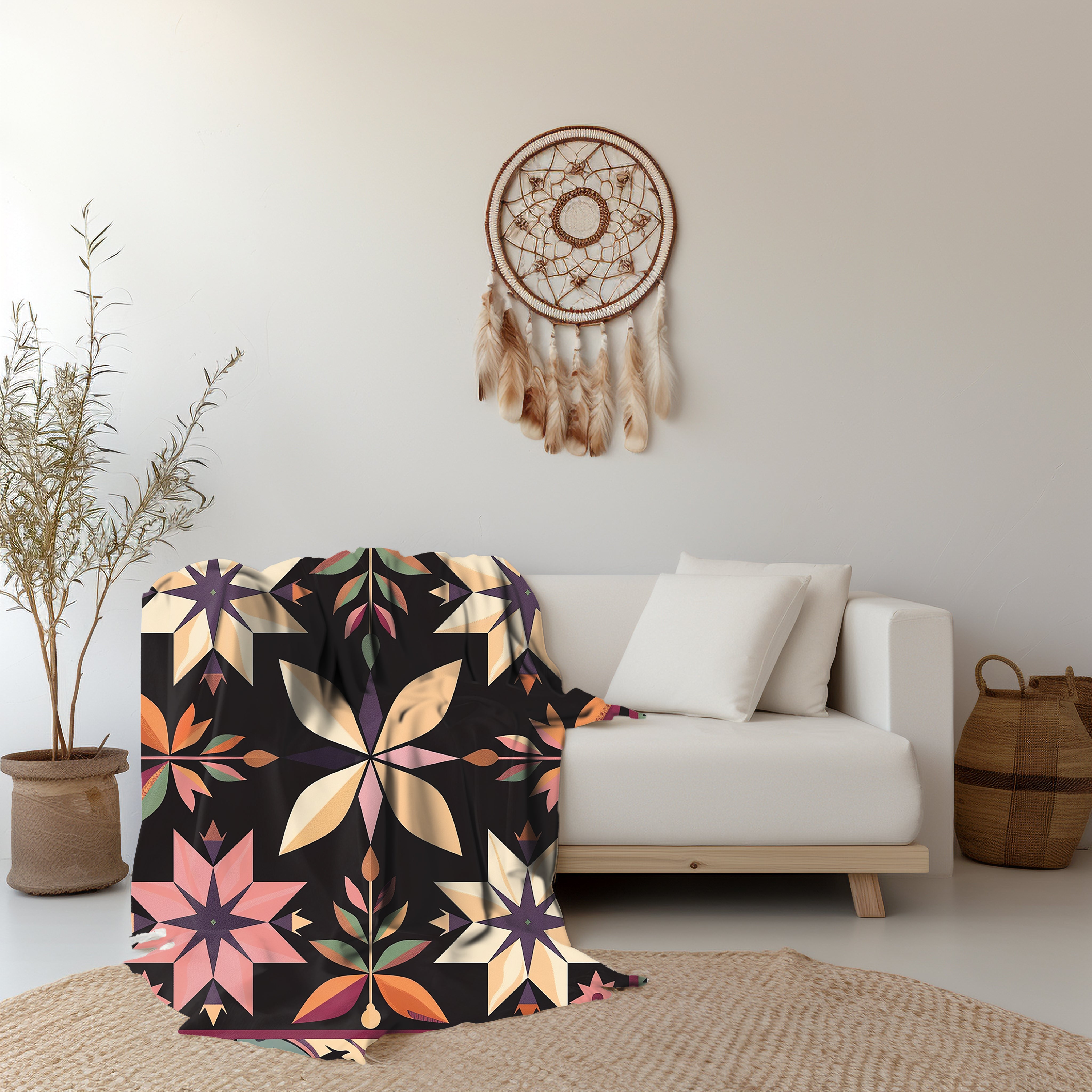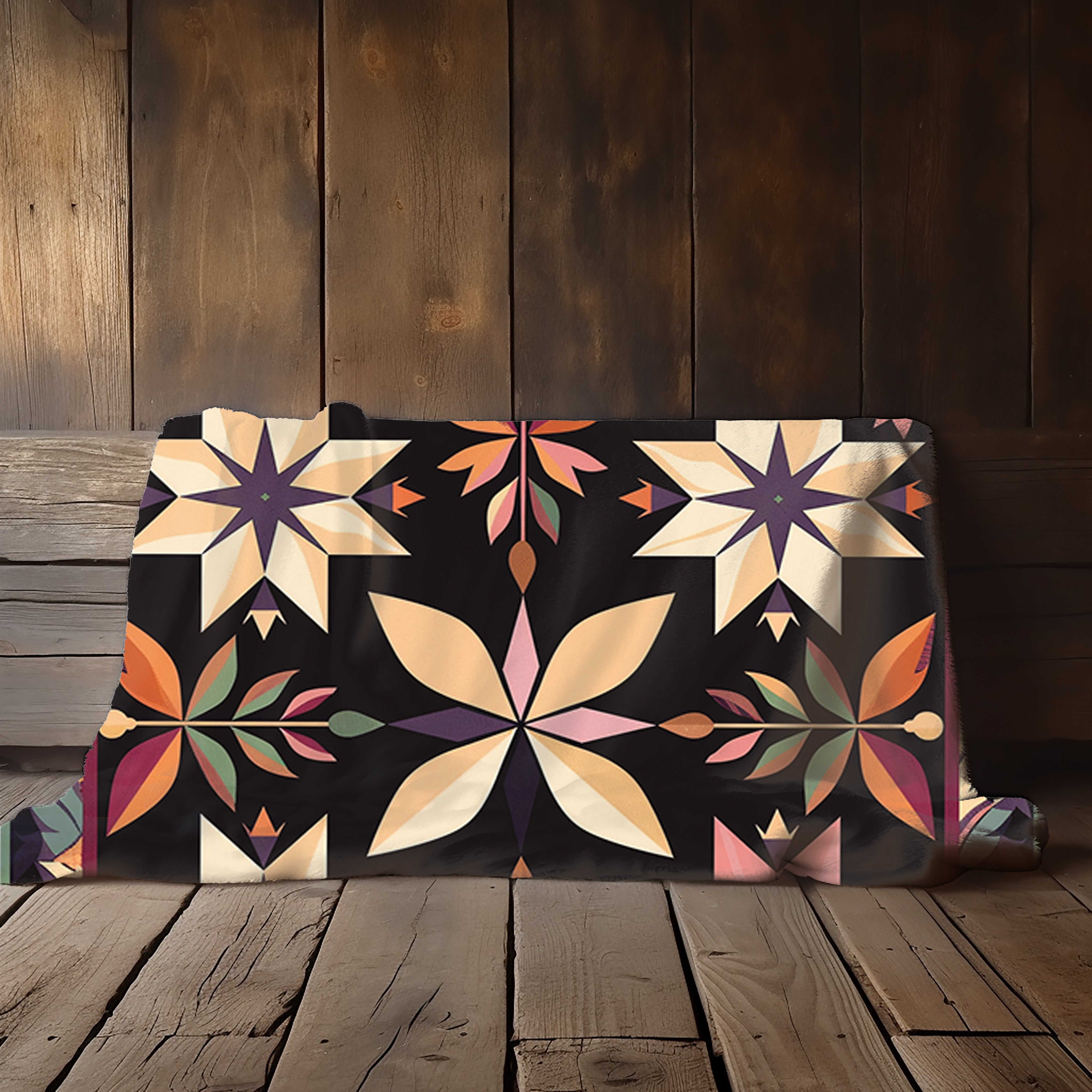 Pink/Tan/Black Multicolor Barn Quilt-Inspired Plush Throw Blanket - Cozy Geometric Velveteen Fleece Accent