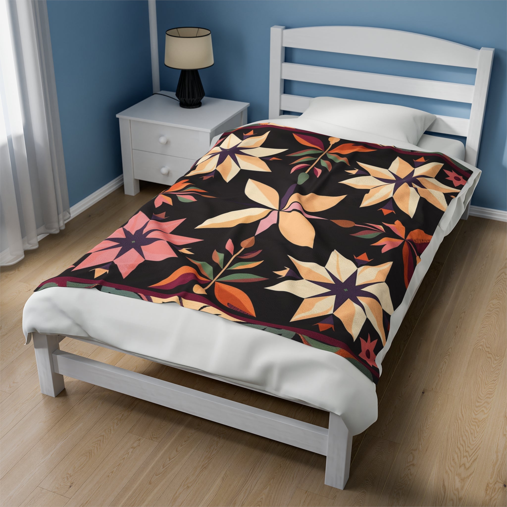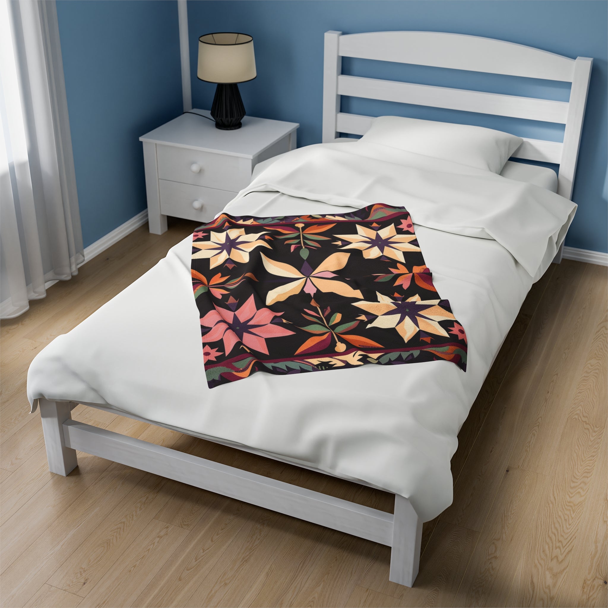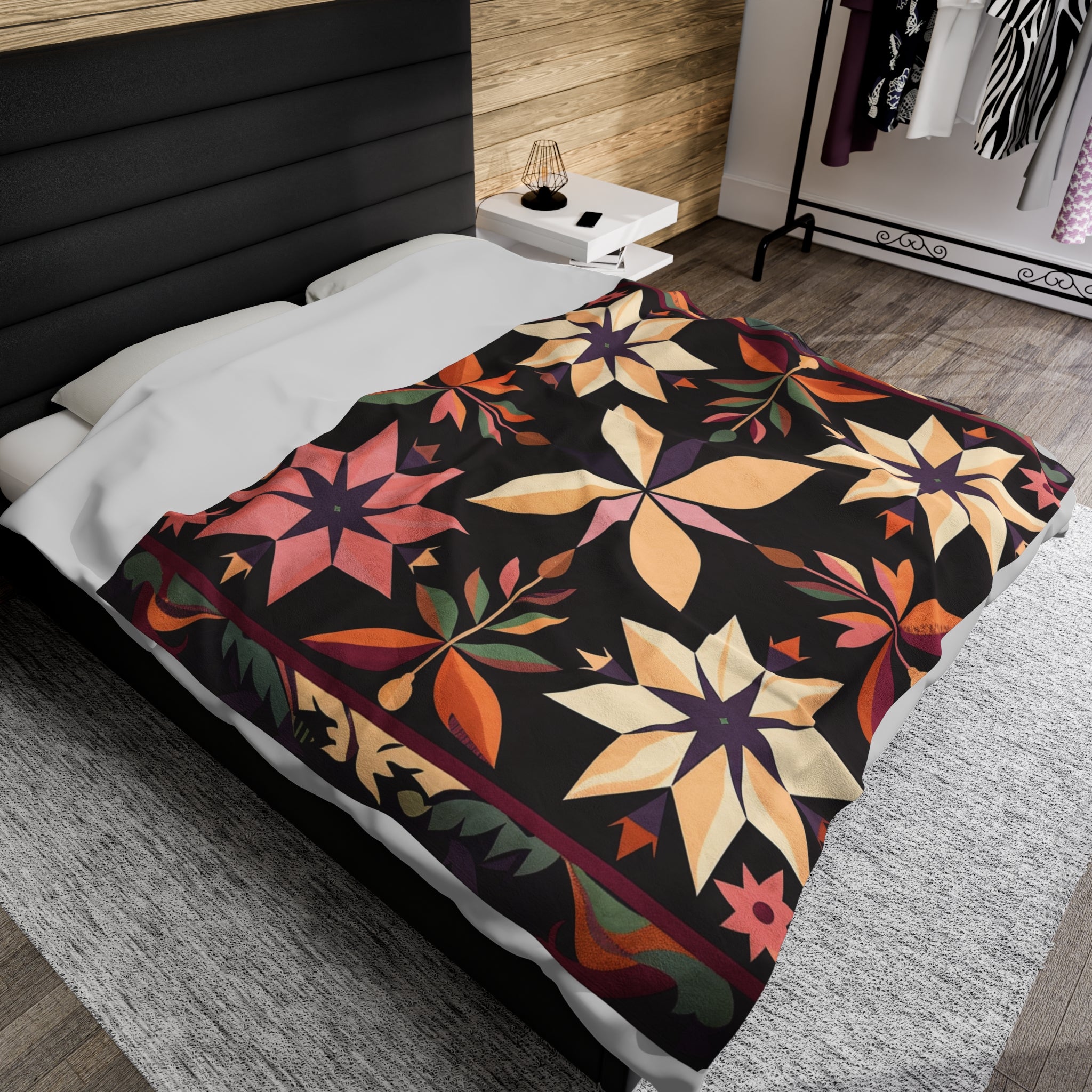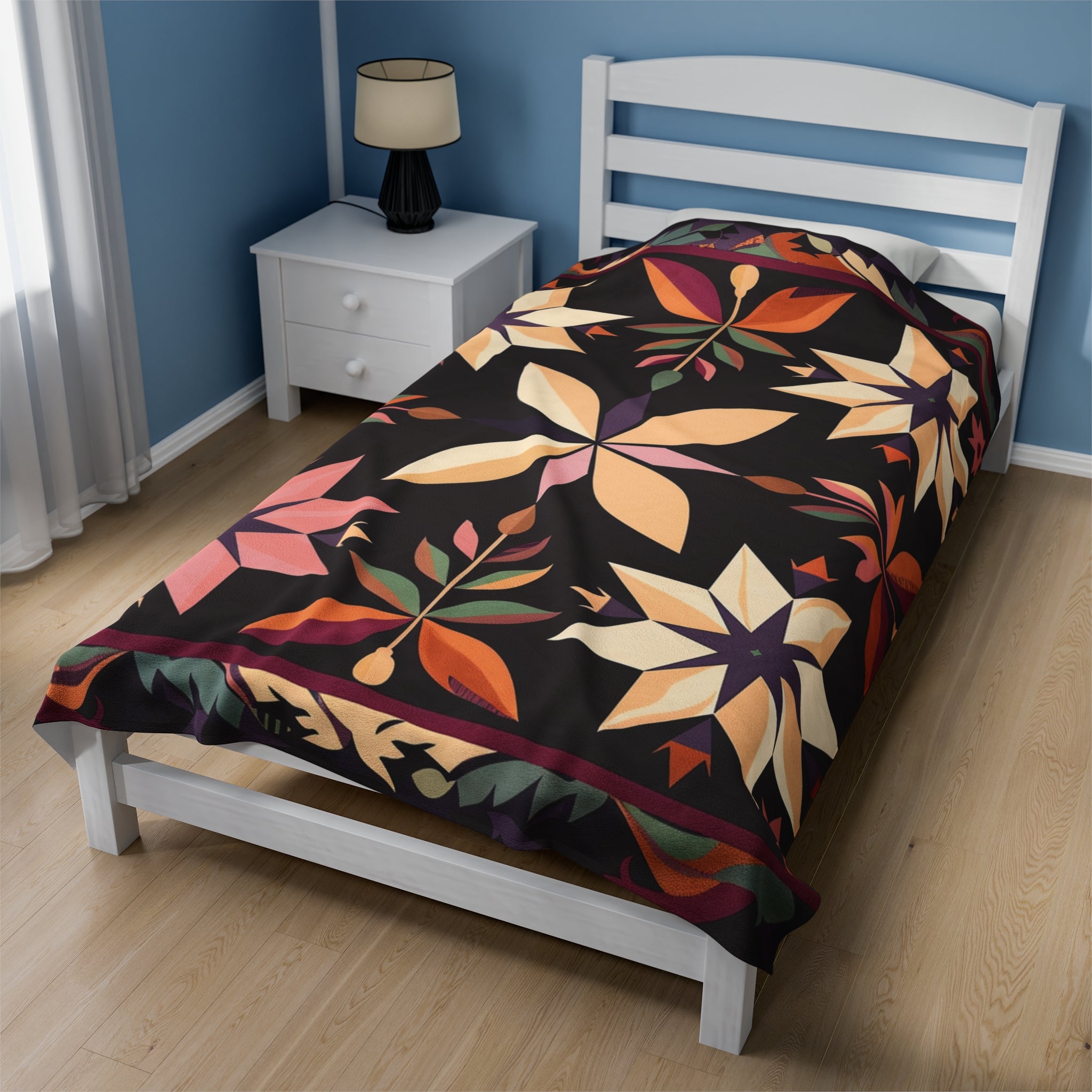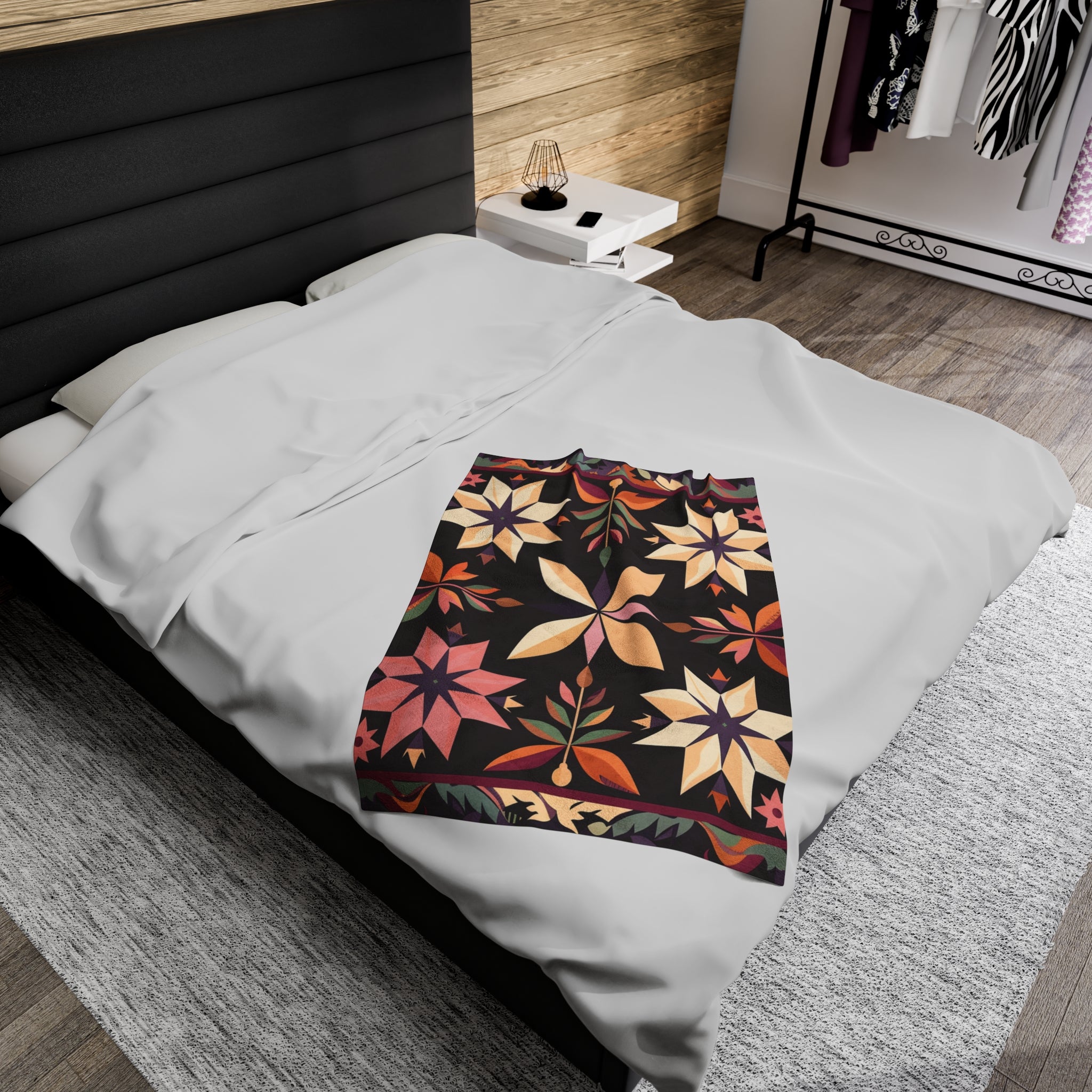 Pink/Tan/Black Multicolor Barn Quilt-Inspired Plush Throw Blanket - Cozy Geometric Velveteen Fleece Accent