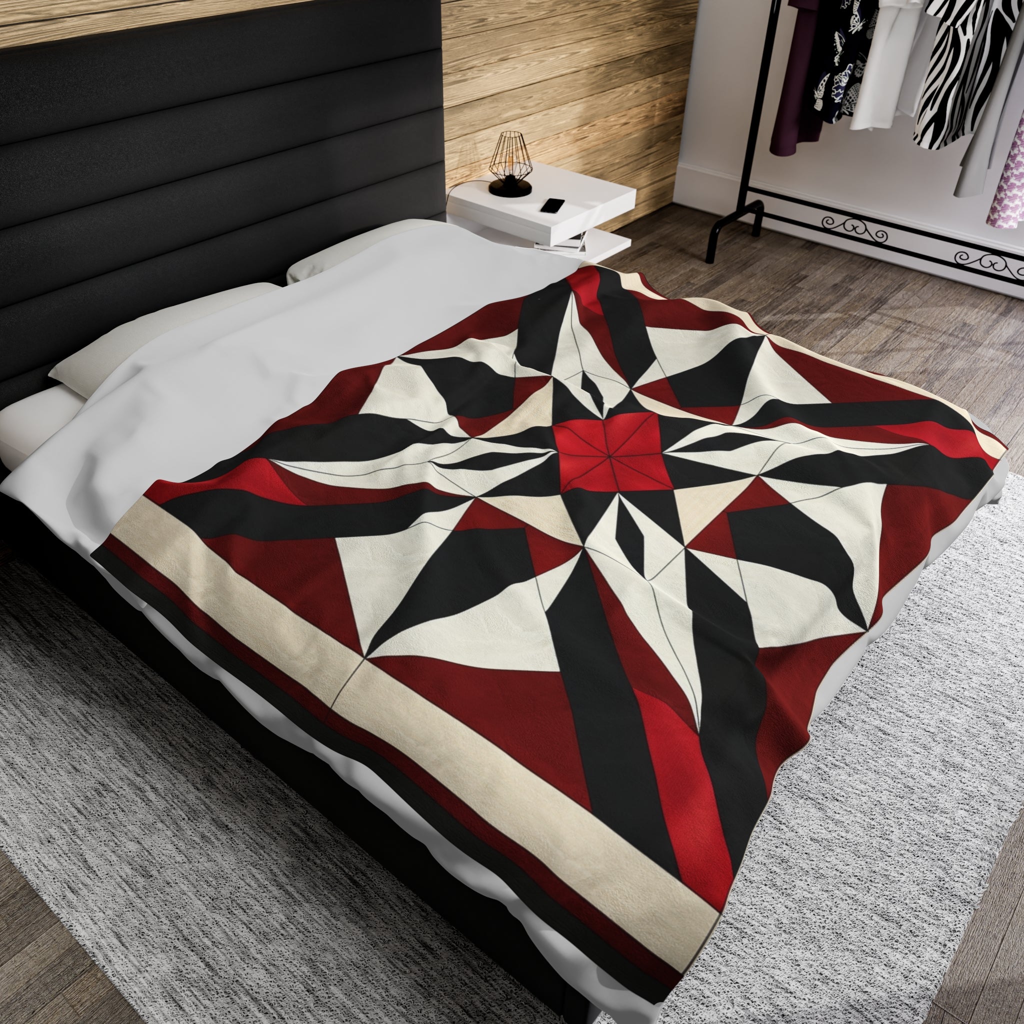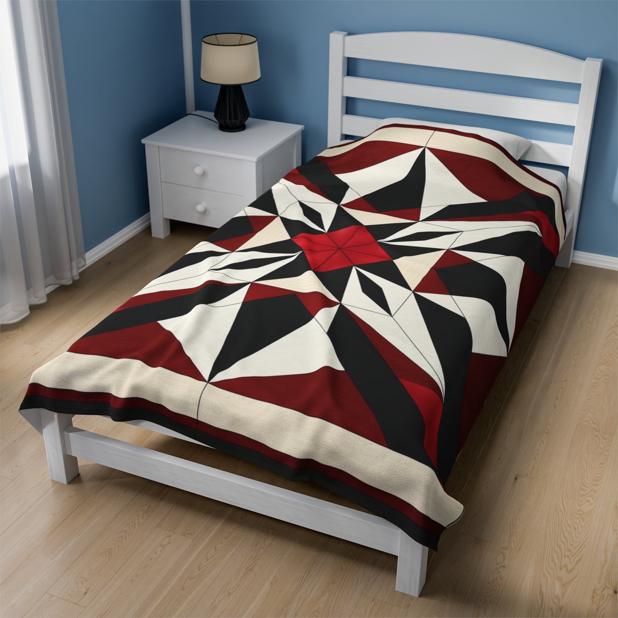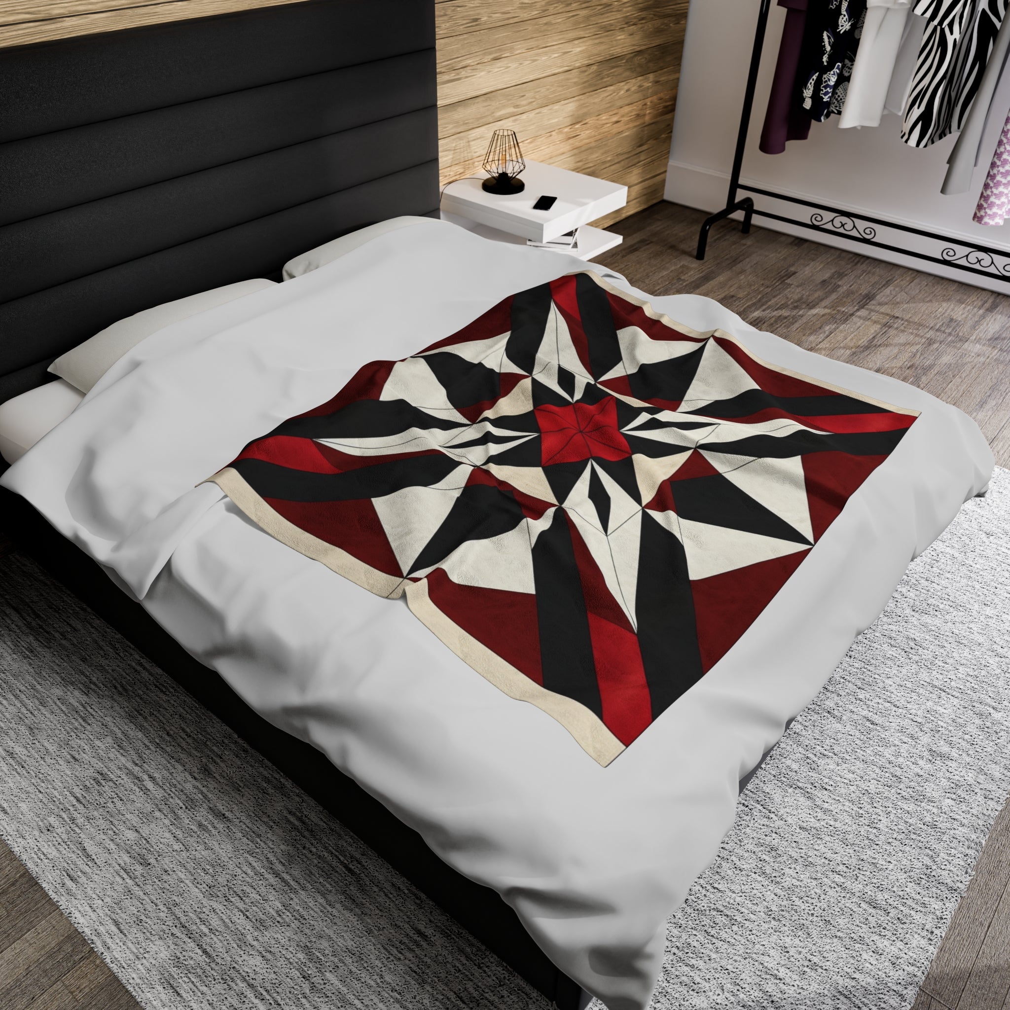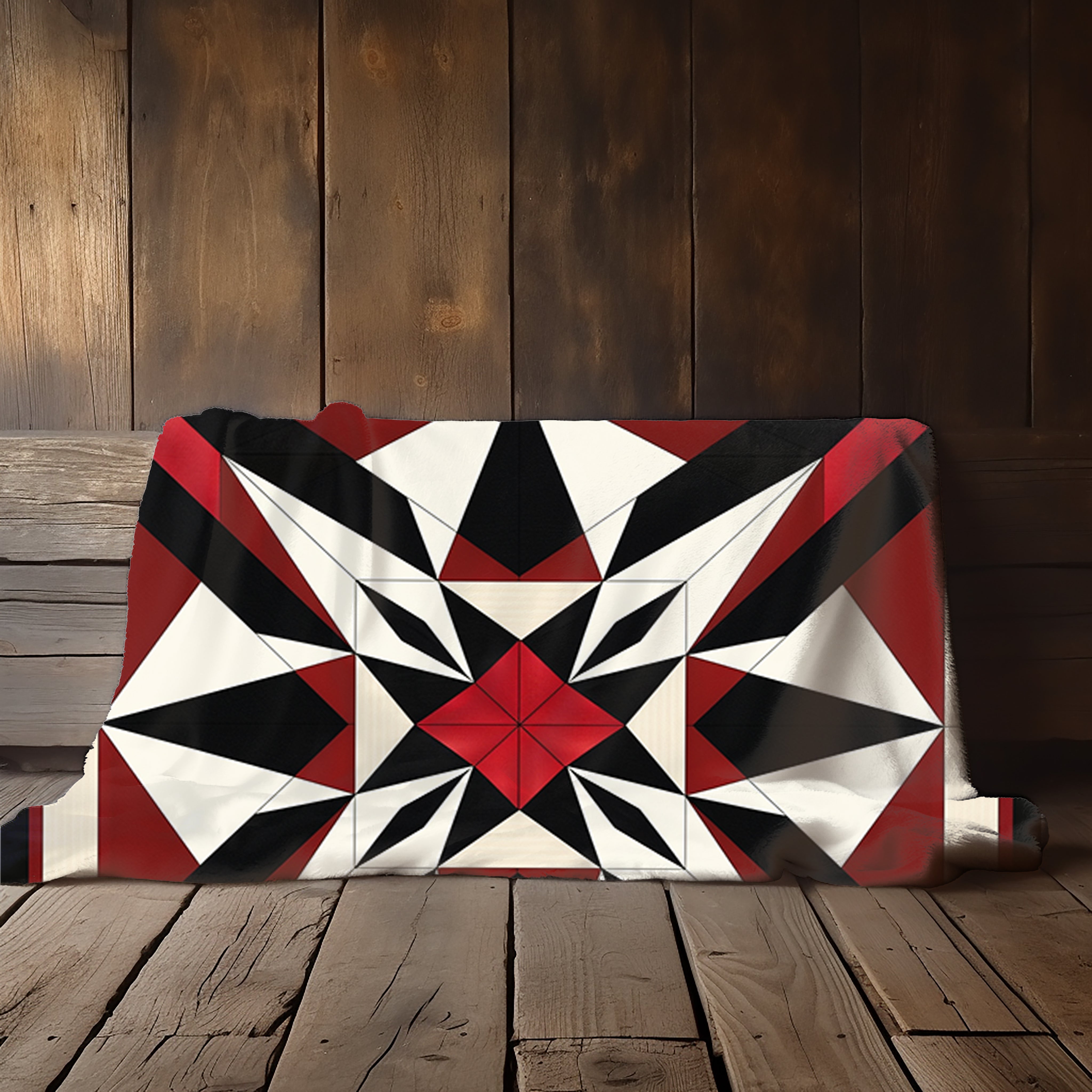 Red, Black and White Barn Quilt-Inspired Plush Throw Blanket - Cozy Geometric Velveteen Fleece Accent