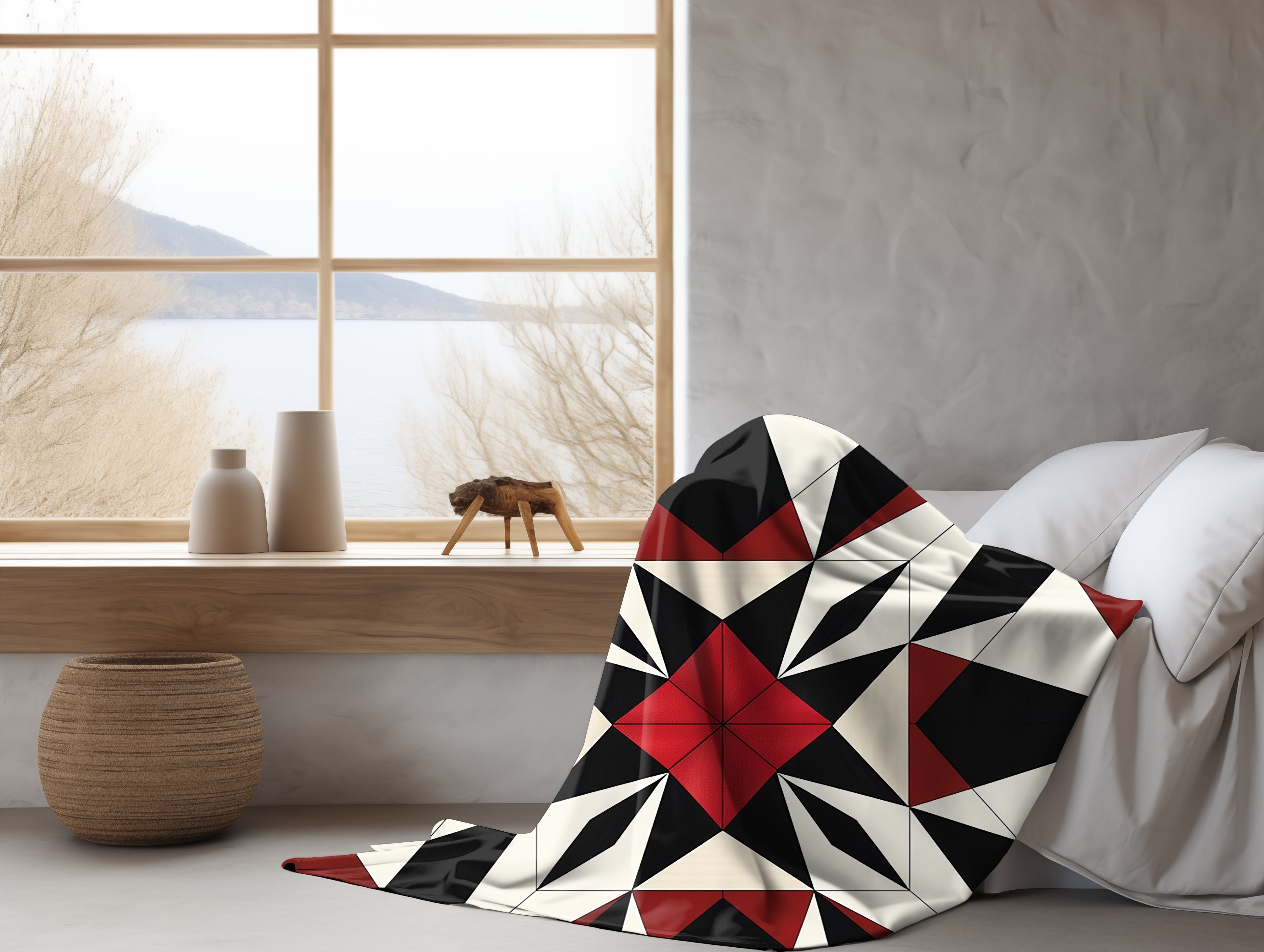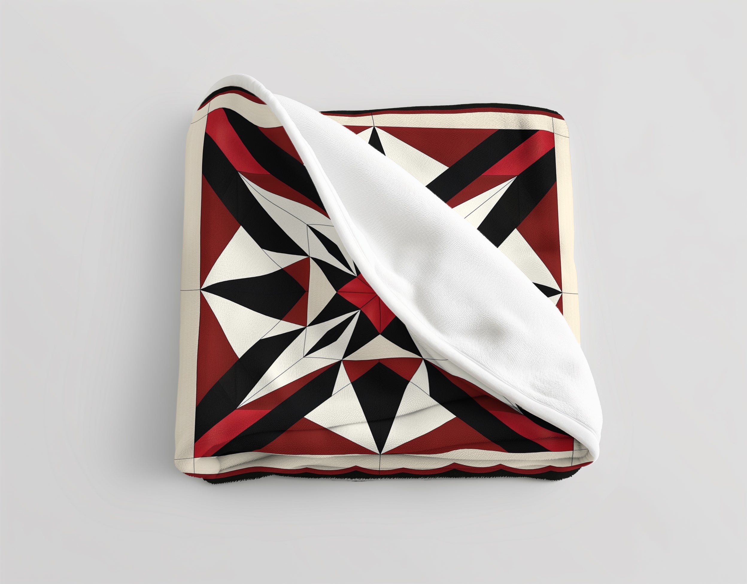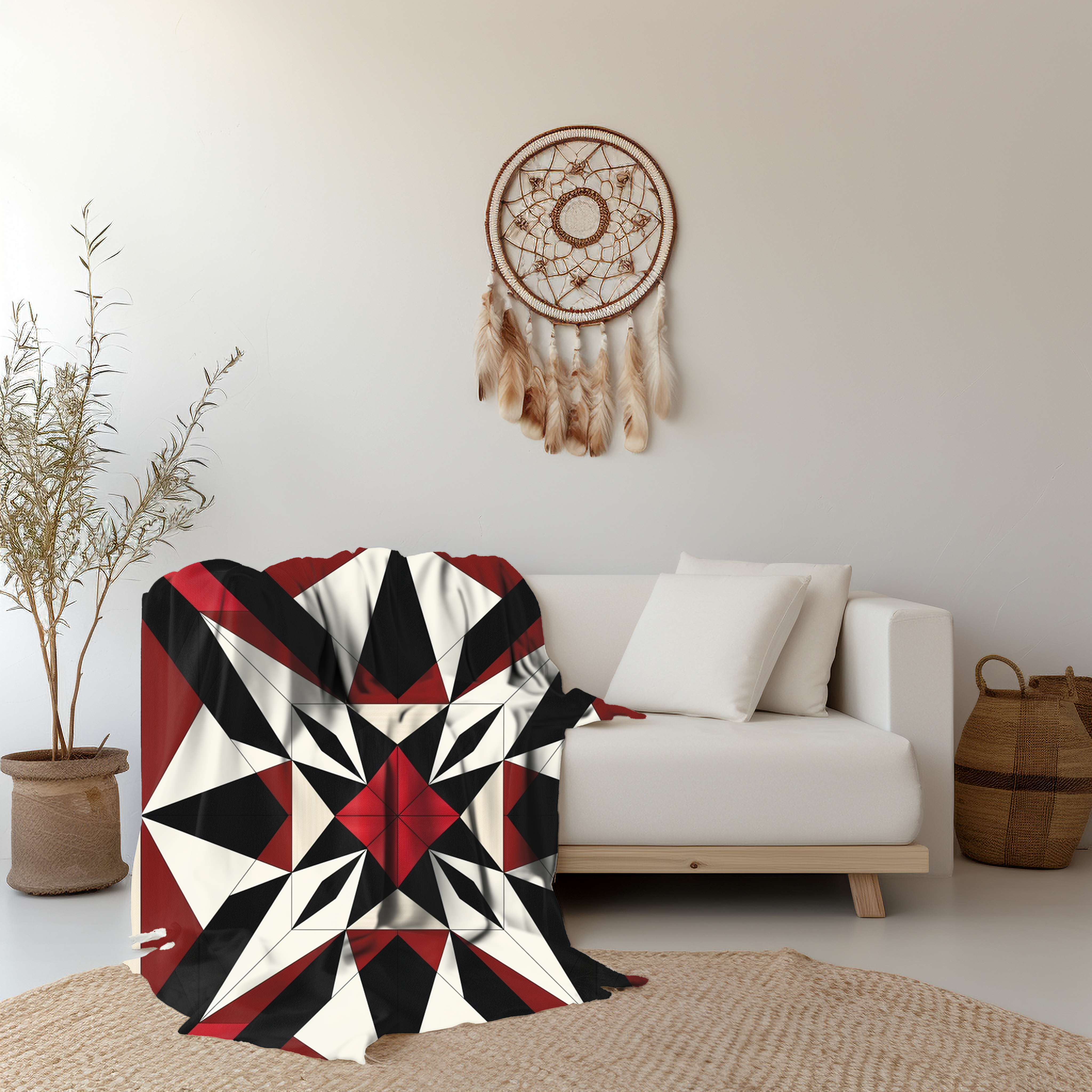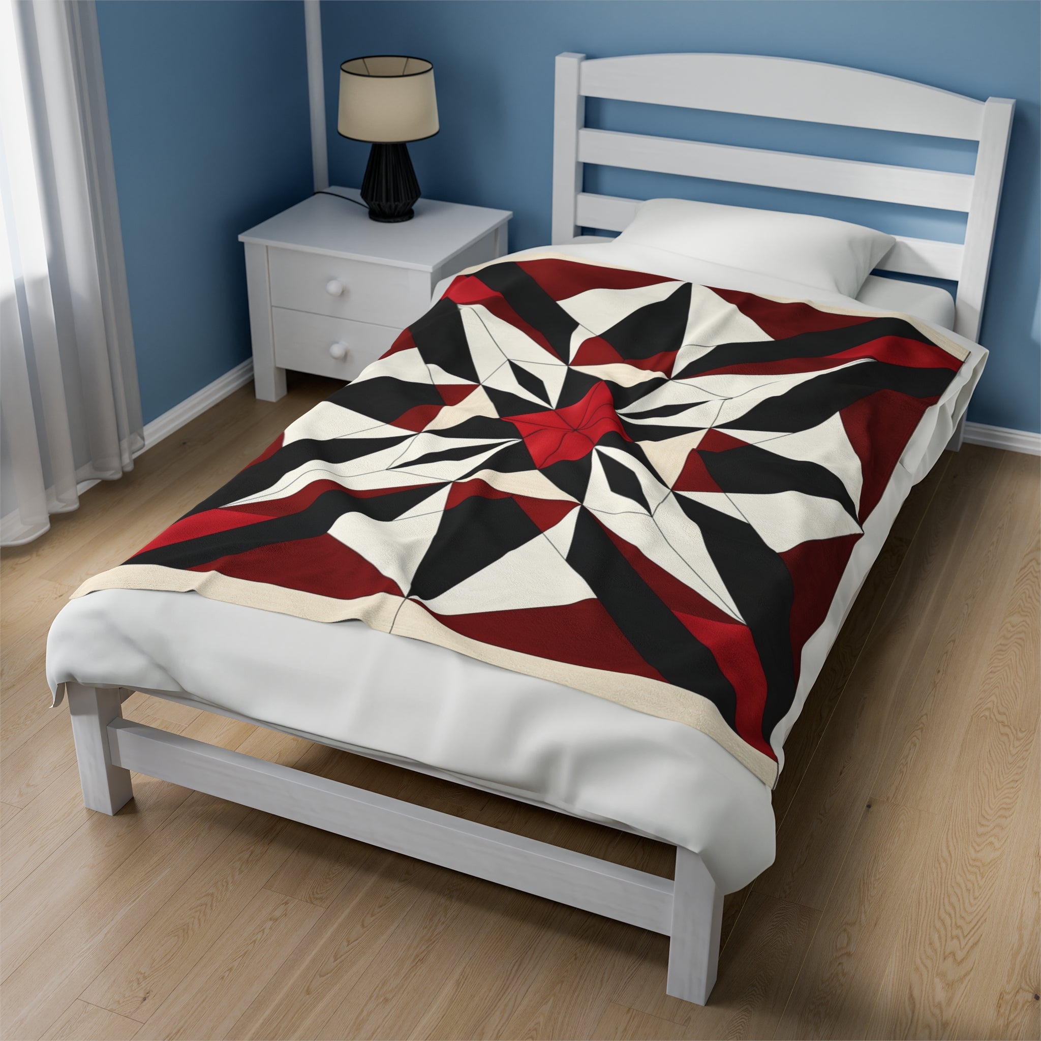 Red, Black and White Barn Quilt-Inspired Plush Throw Blanket - Cozy Geometric Velveteen Fleece Accent