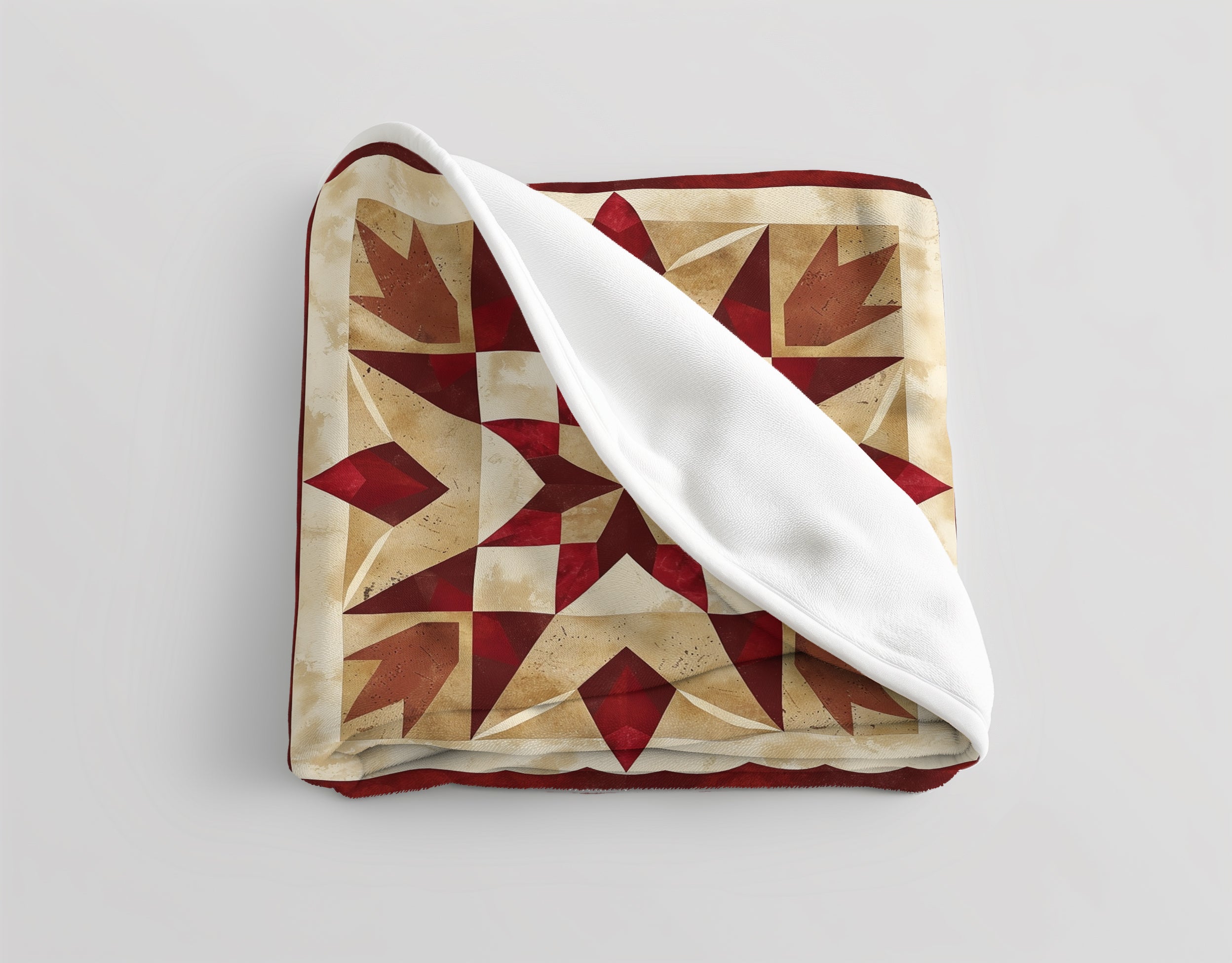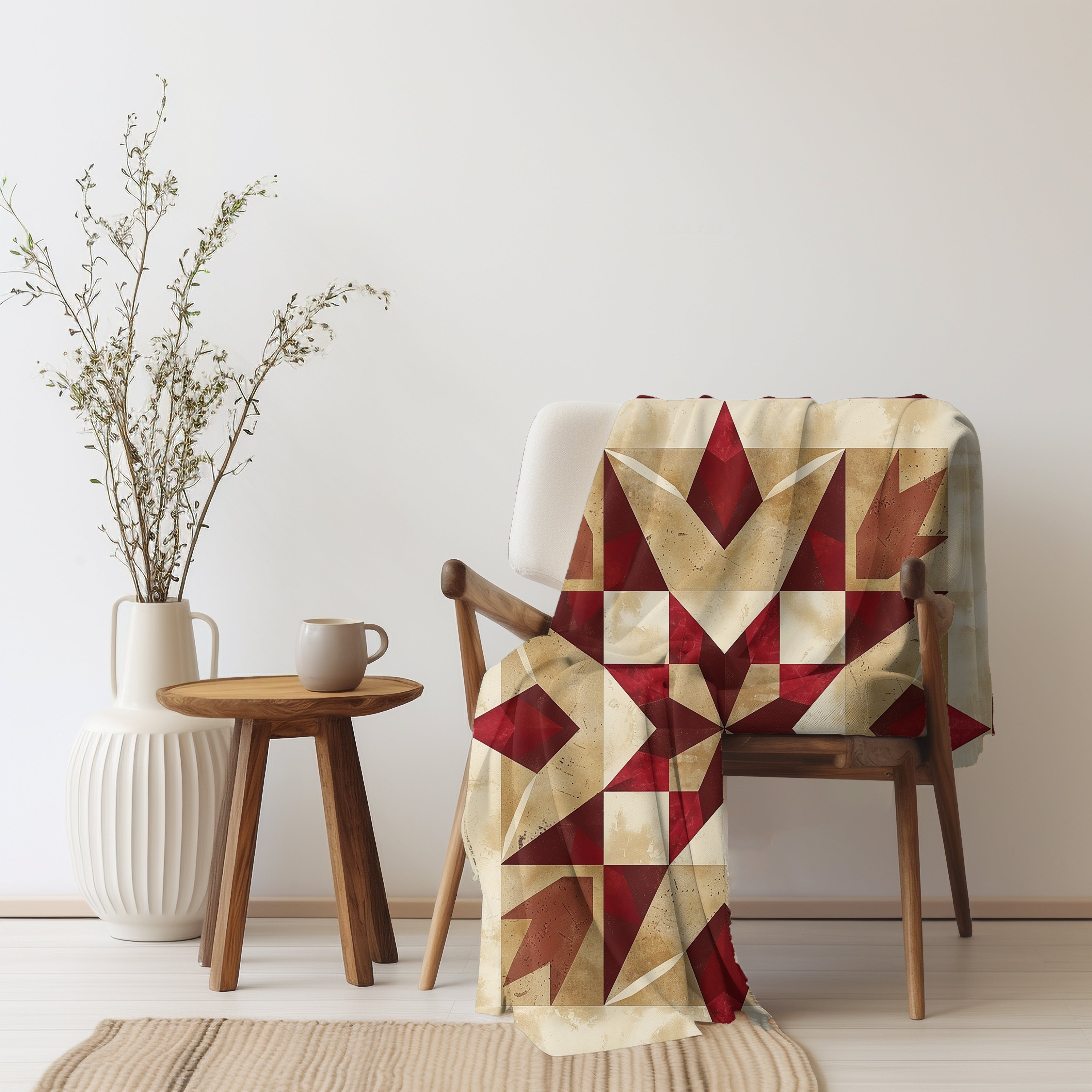 Red/Tan Multicolor Barn Quilt-Inspired Plush Throw Blanket - Cozy Geometric Velveteen Fleece Accent